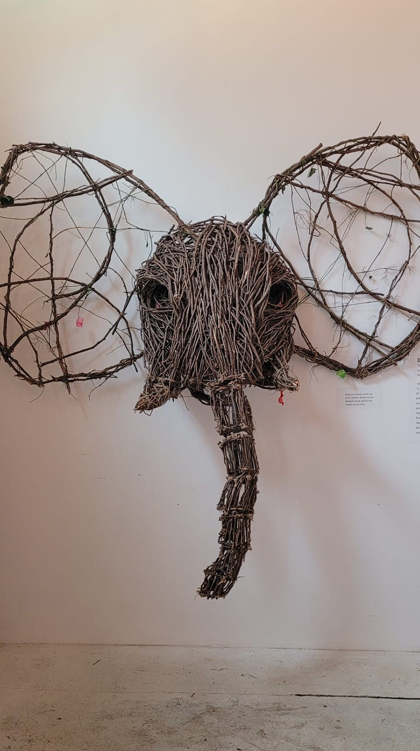 This hybrid plant-animal-human sculpture seeks to explore these profound ideas, and it encourages viewers to reflect on the invisible bonds that connect all living things. This creature is crafted entirely from natural, biodegradable, and organic materials.