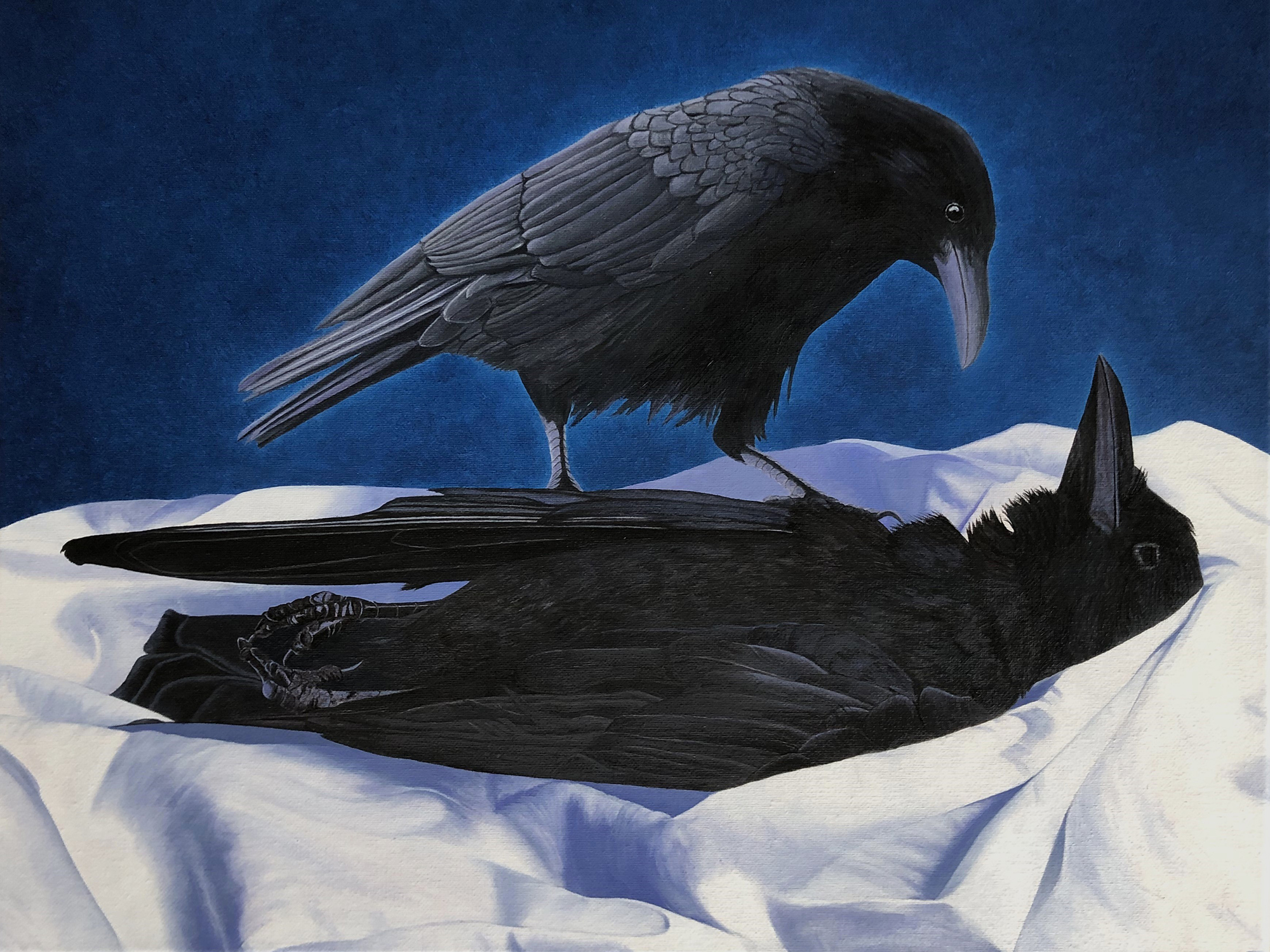 What fascinates me the most is flipping this bird/death metaphor: the death of a bird and human reaction. It strikes me how little emotion we shed for any deceased wild creature. So, I paint soulless birds in a sensitive light or an atypical setting, to immortalize their value in the ecosystem. Some bird species mourn their departed, as we do. It is easy to assign despair as an emotion to an agitated mother bird witnessing her chicks being snatched for food. I aim to spark empathy in the viewer and form a visual connection where language alone may not be sufficient.