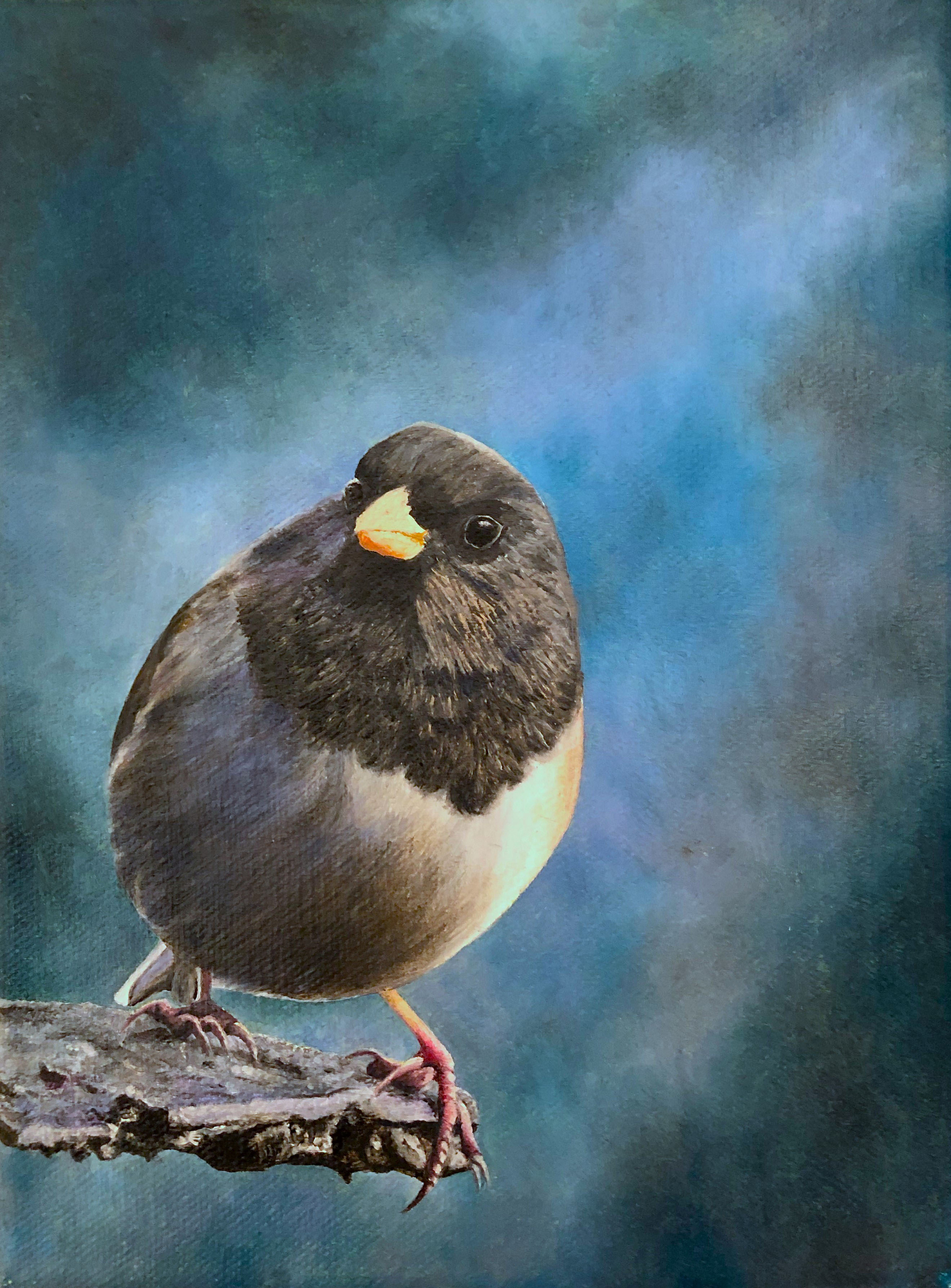 Notice elevates living and dead birds through oil paintings. Through my artistic emphasis on environmental issues, I aim to highlight that birds are nature’s ambassadors. While singing and silent, they have a message for us.