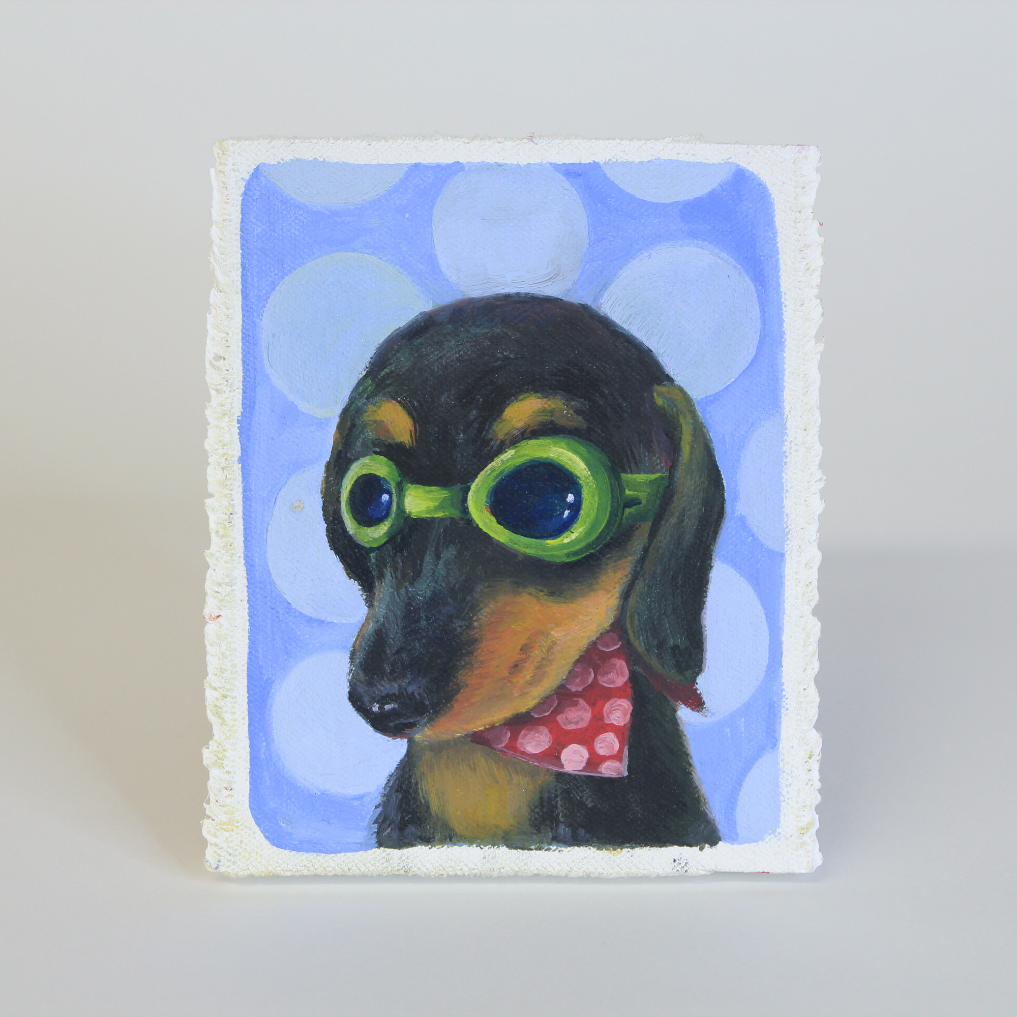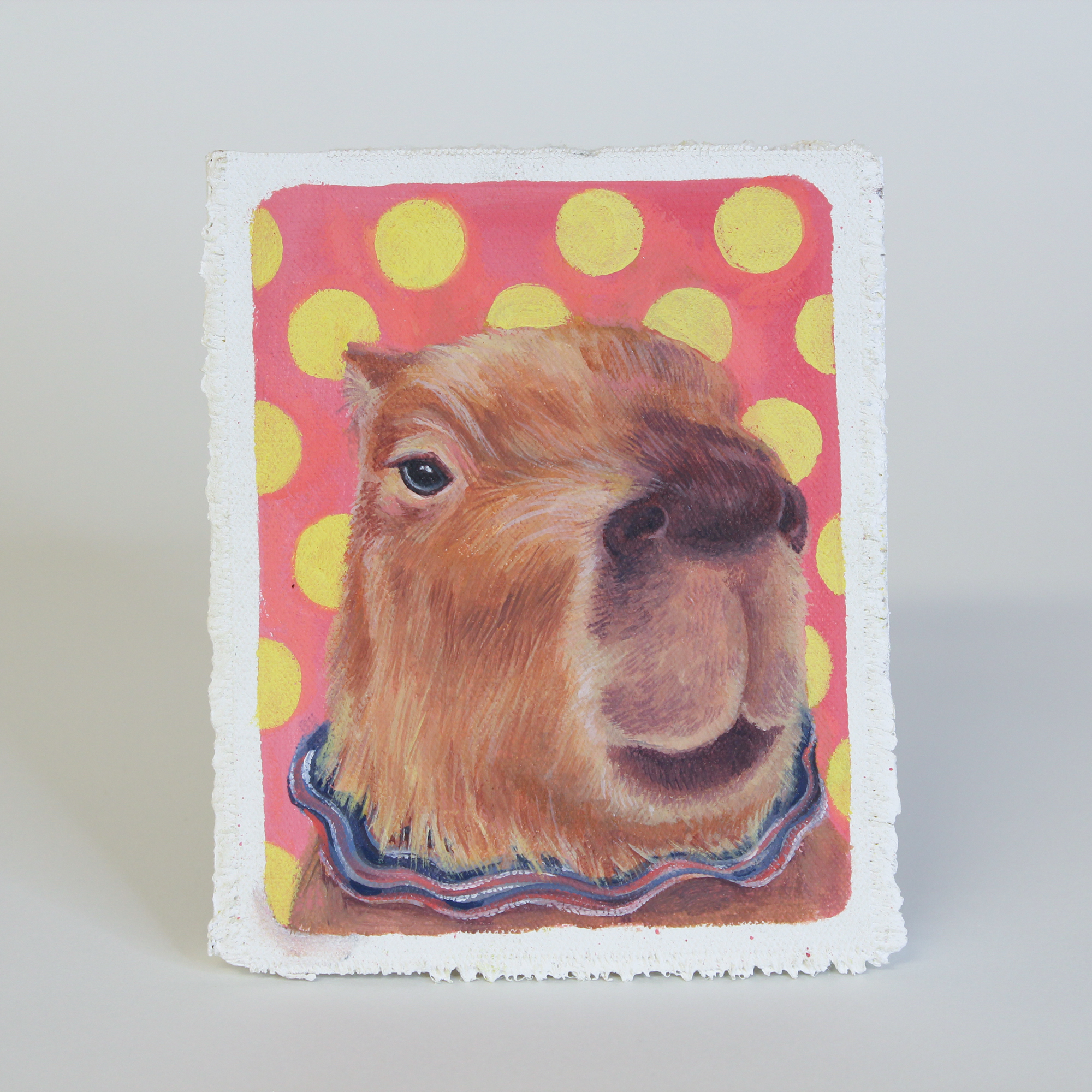 My artworks explore themes of beloved animal portraits depicted in a children’s book style created with layers of delicate pencil marks and expressive brushstrokes. I illustrate pets as if they were a child, all animals can explore where the human goes, what the human experience does and eats. I want to give a feeling of visual delight, and comfort pet owners, especially those who have experienced pet loss by bringing animals to life with a variety of expressions and accessories. By using the impasto technique, a genuine emotional response is evoked. I aim to engage audiences with authentic storytelling and vivid imagery. My work makes the viewers feel as if they are stepping into the actual room inside my painting.