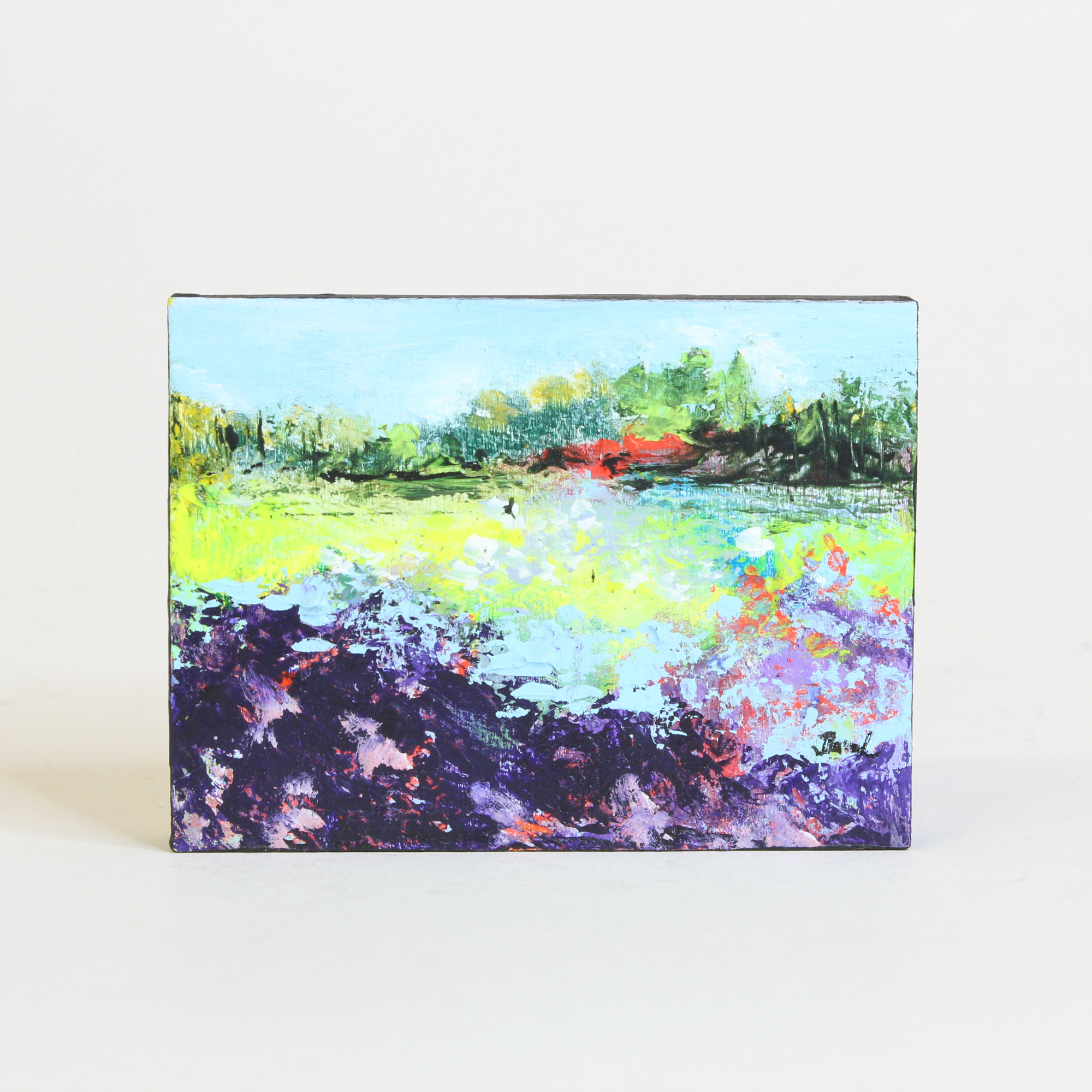 Each piece is finished with a UV protecting varnish that prevents yellowing or fading of colours. Her work can be hung framed or unframed. All edges are carefully painted, making it ready-to-hang. Jacelyn hopes to continue to be inspired by family and friends, nature and the beauty that surrounds us, including landscapes, flowers and animals.