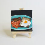 Food carries memory and belonging. It’s nostalgia for childhood and the comfort of meals shared with friends who became family, and in my case, the small joys of settling into a new city. I explore these ideas in a series I call “Small Bites”. The work is set in acrylics, building weight and texture, so the surface feels alive, then layered with oils to add depth and mood. Each piece holding both energy and atmosphere, a taste of memory in colour and form.